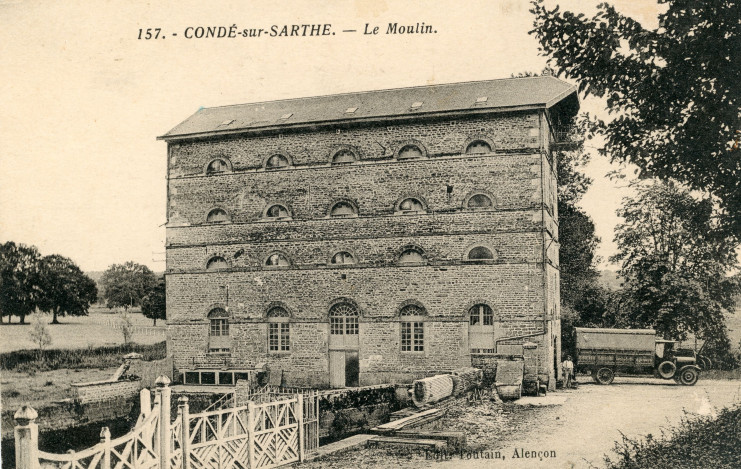 Condé-Sur-Sarthe (Orne), le moulin, carte postale ancienne noir et blanc, éditeur TOUTAIN Alençon (14cm x 9cm), (Date d'utilisation : 1946), AMA, 4FI3765.