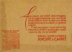 Pâtes alimentaires Rivoire et Carret, publicité : anaglyphes offerts par la marque, collection particulière Nicole Renard, don 2005, AMA, 1Z/476.