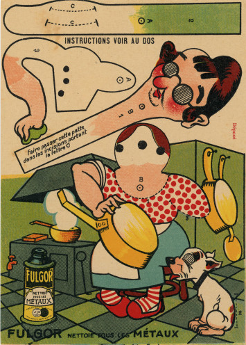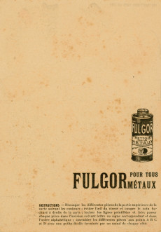 Publicité commerciale des produits de nettoyage pour les métaux Fulgor : images animées (16.5 x 11.5 cm), collection particulière Nicole Renard, don, AMA, 1Z/477.