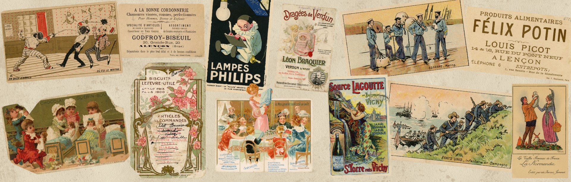 Produits alimentaires Félix Potin, communication : lot de 6 images publicitaires, imprimerie F. Champenois publicitaires, AMA, 61Z/1.