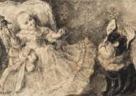 • L'enfant et le bouledogue, fusain, Louise Jeanne Aimée...